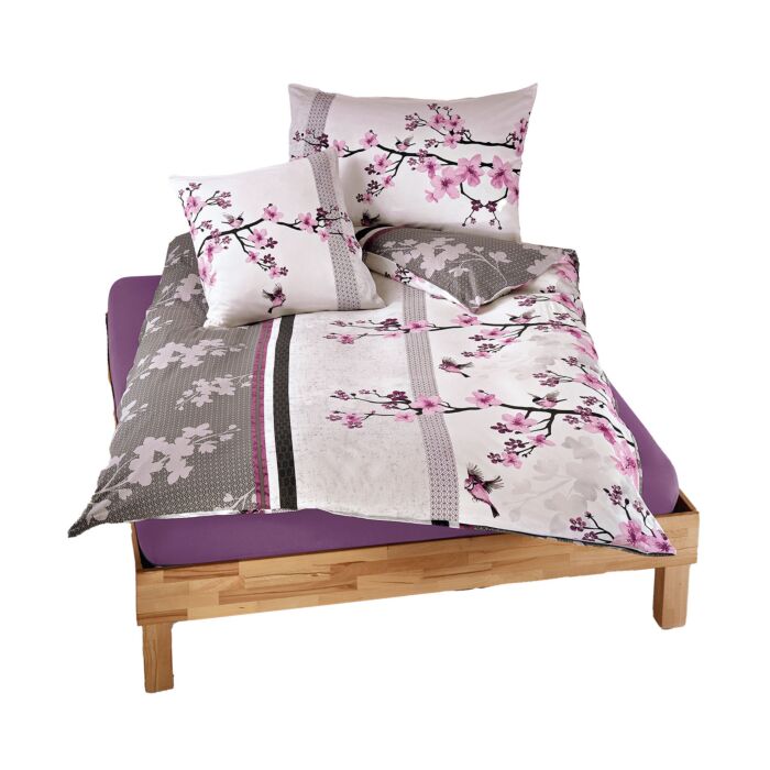 Linge de lit «Fleurs de cerisier», violet-anthracite