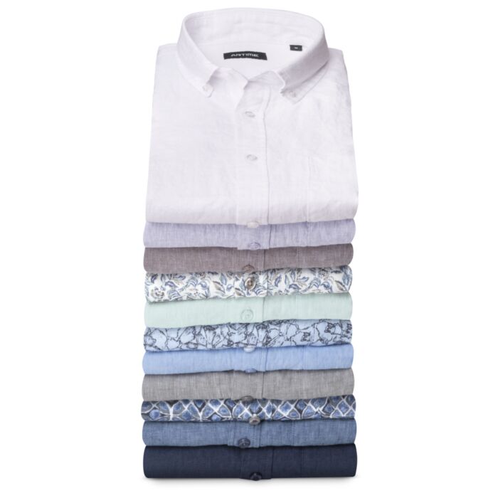 Herren Kurzarm Leinenhemd mit Brusttasche