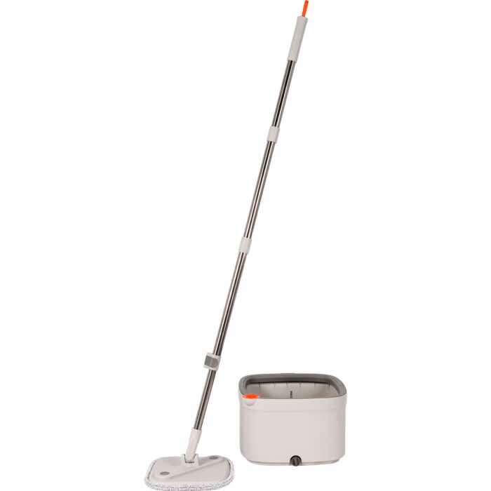 - 1 Eimer, 1 Mopp mit Teleskopstab, 2 Mikrofaser-Pads